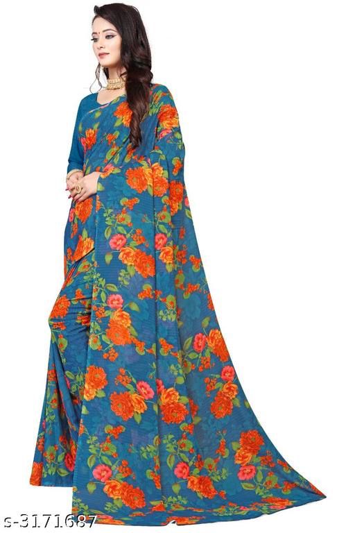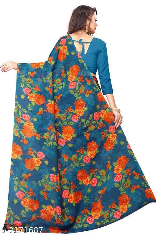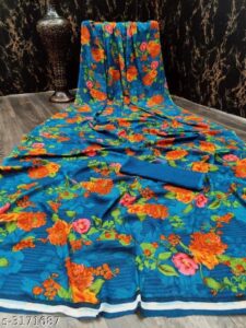 Floral Print Blue Saree