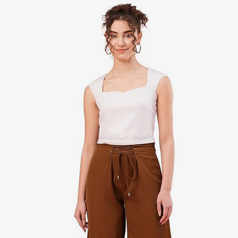 Crafted from soft and breathable fabric, this top ensures all-day comfort while maintaining a sleek and polished appearance. The minimal white design makes it a versatile wardrobe essential that can be styled for both casual outings and semi-formal occasions.